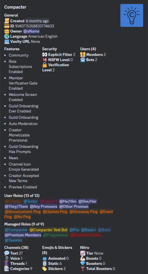 Compacter offers a large variety of moderation commands, all of which are easy to use. Never again will you struggle to figure out how to use a command.